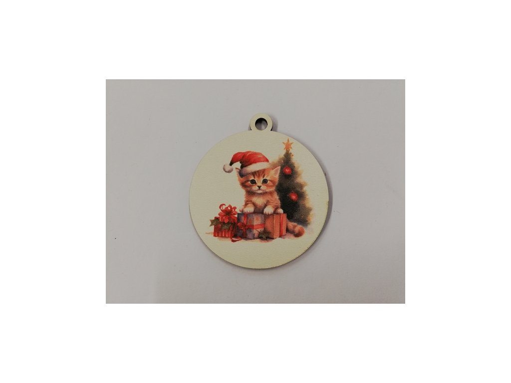 Vánoční výřez baňka - koťátko s vánoční čepičkou č.2