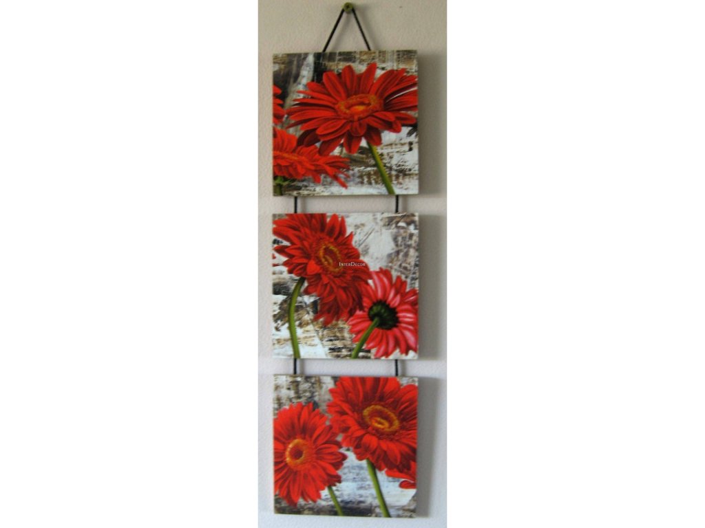 Závěsný trio obraz na desce - 14 x 14 cm - Červené gerbery