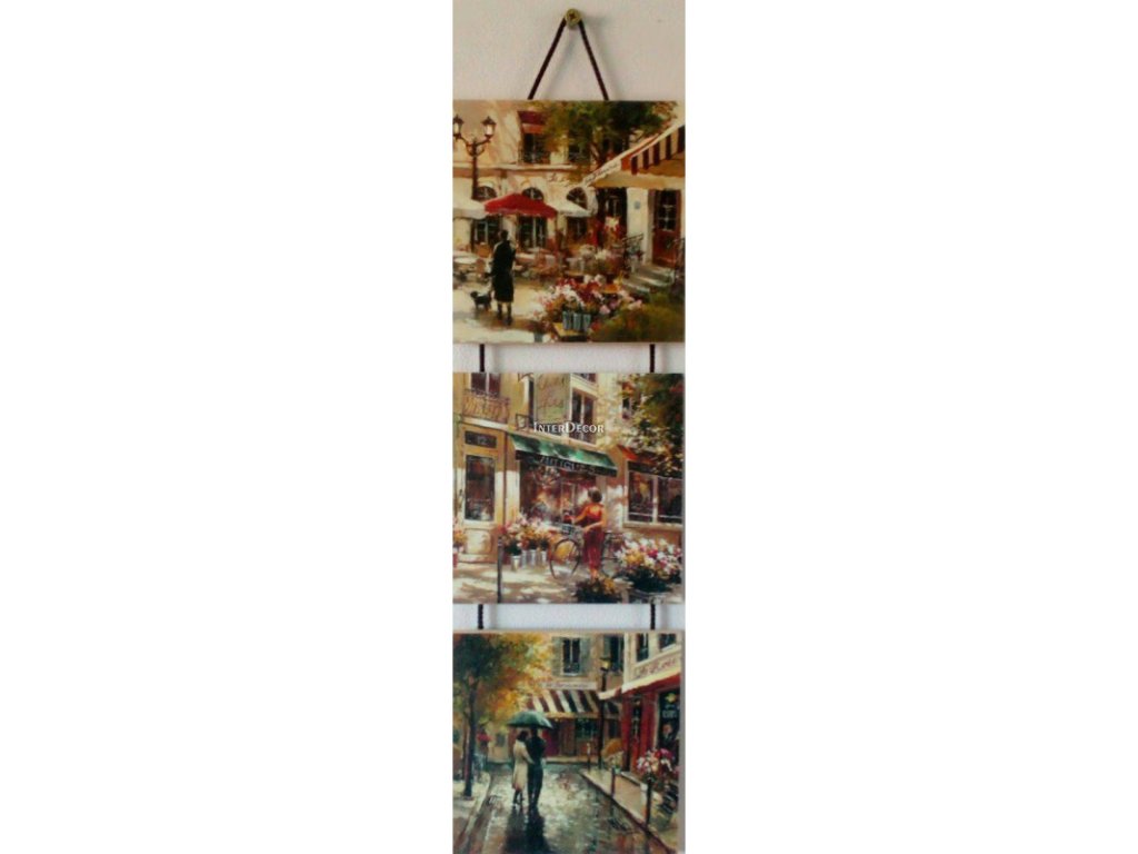 Závěsný trio obraz na desce - 14 x 14 cm - Ulička