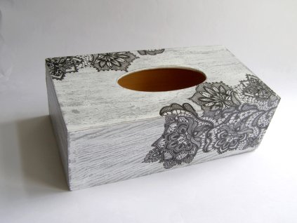 Krabice na papírové kapesníky - Krajka v šedé patině