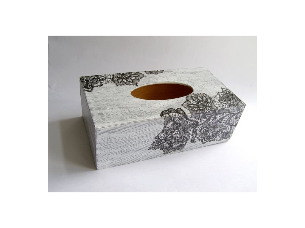 Krabice na papírové kapesníky - Krajka v šedé patině