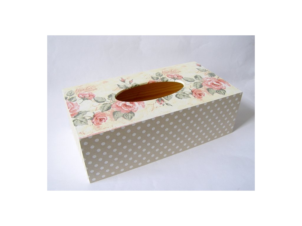 Krabice na papírové kapesníky - Růže a béžový puntík