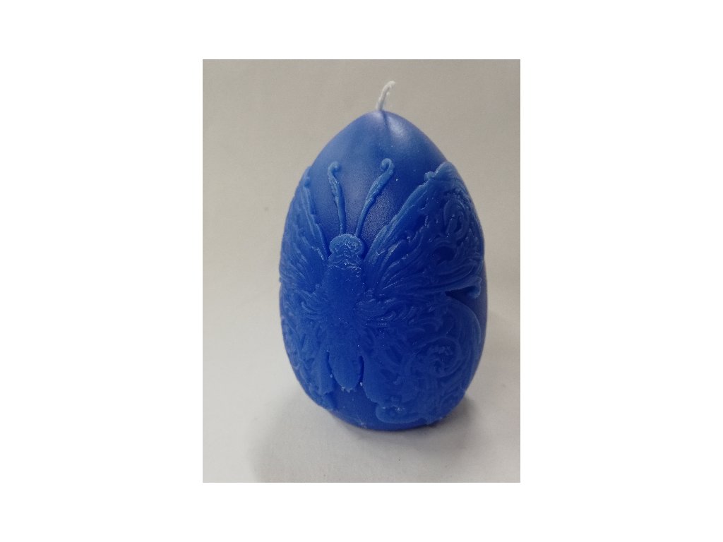 Svíčka vonná z parafínového vosku - Vejce s motýlem modré - čerstvý tropický vítr