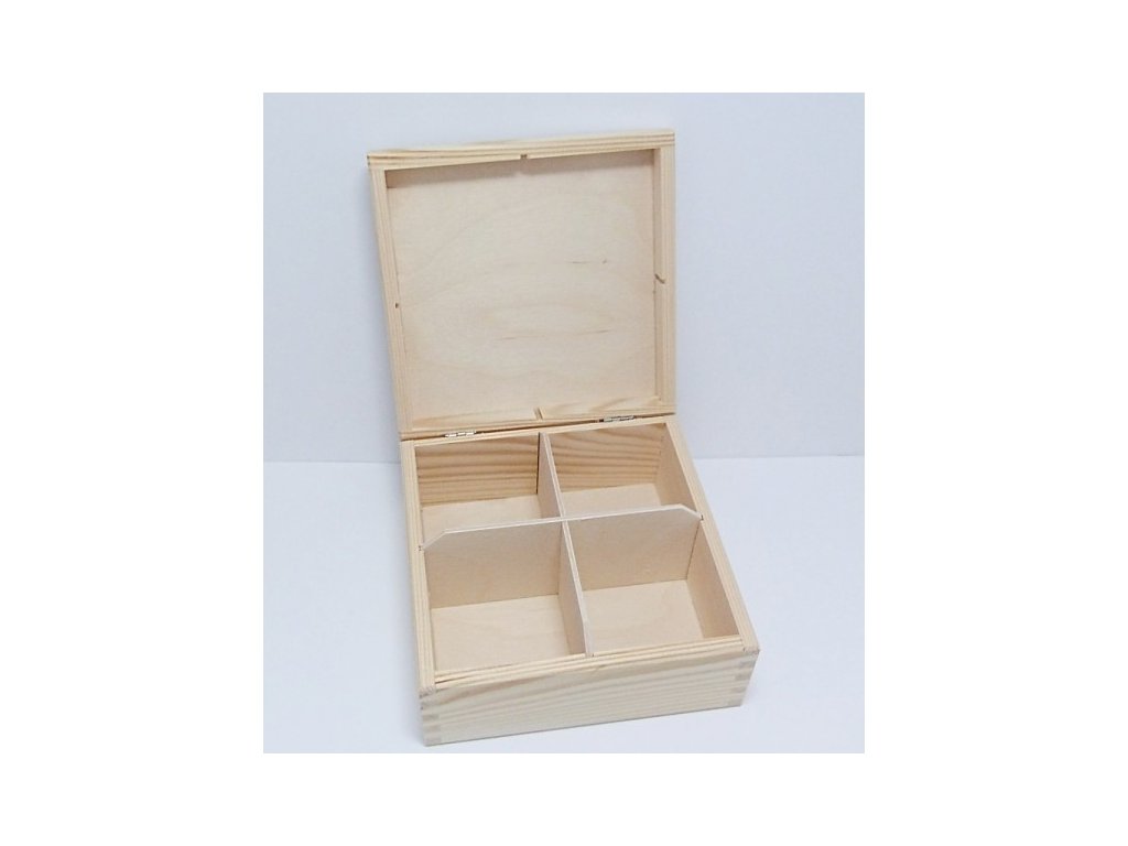 Dřevěná krabička 4 přihrádky bez zapínání - 16 x 16 cm