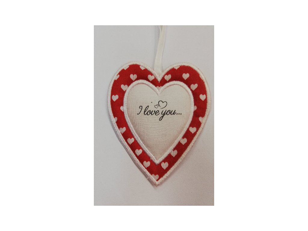 Látkové srdíčko bílé s červenobílým okrajem - I Love You