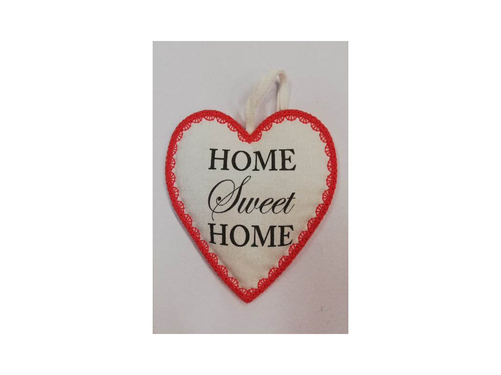 Látkové srdíčko bílé s červeným okrajem - Home Sweet Home