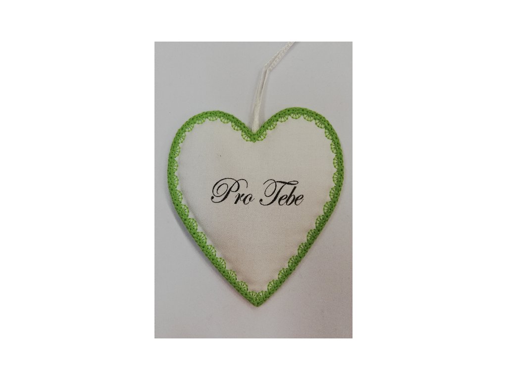 Látkové srdíčko bílé se zeleným okrajem - Pro tebe