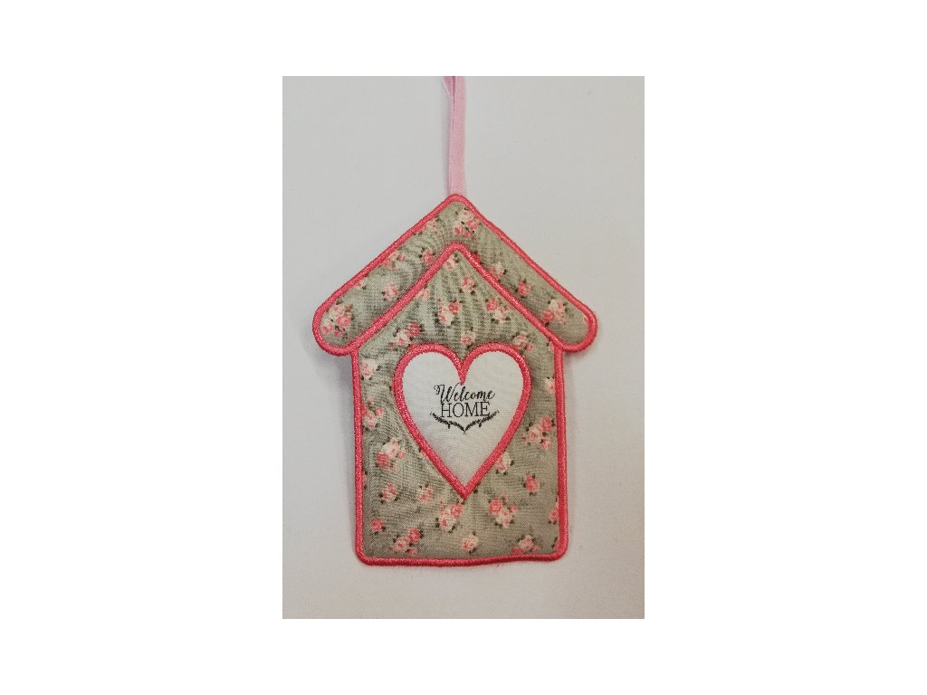 Látkový domeček plochý č.3 šedý s růžovým okrajem - Welcome Home