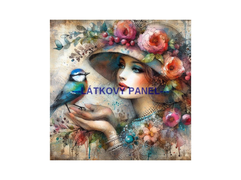 Látkový panel - Dáma s ptáčkem - DZ-91