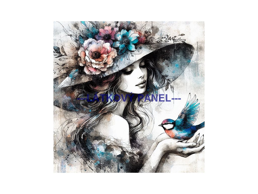 Látkový panel - Dáma s ptáčkem - DZ-97