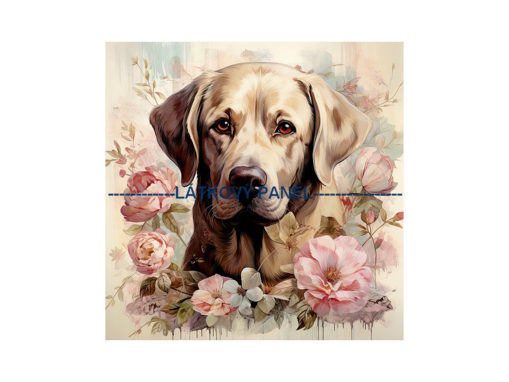 Panel bavlna 25 x 25 cm - Pes v květinách - PS-304