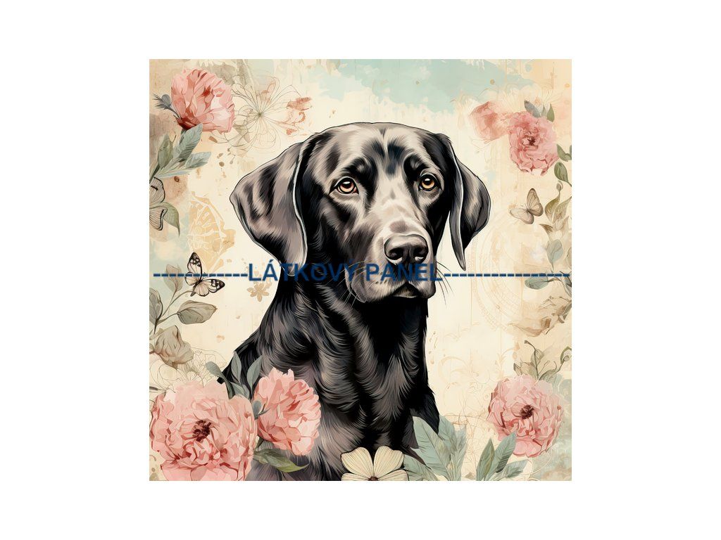 Panel bavlna 25 x 25 cm - Pes v květinách - PS-305