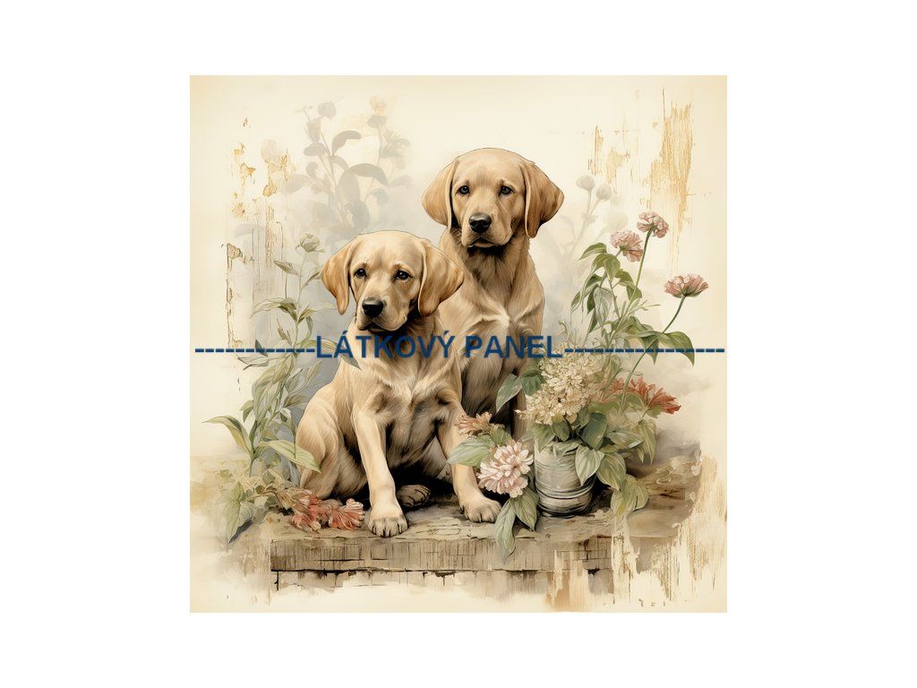 Panel bavlna 25 x 25 cm - Pes v květinách - PS-306