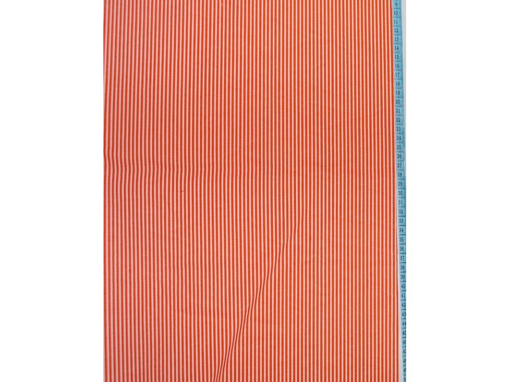 Bavlněná česká látka šíře 150cm - proužek 2mm - oranžová (50cm)