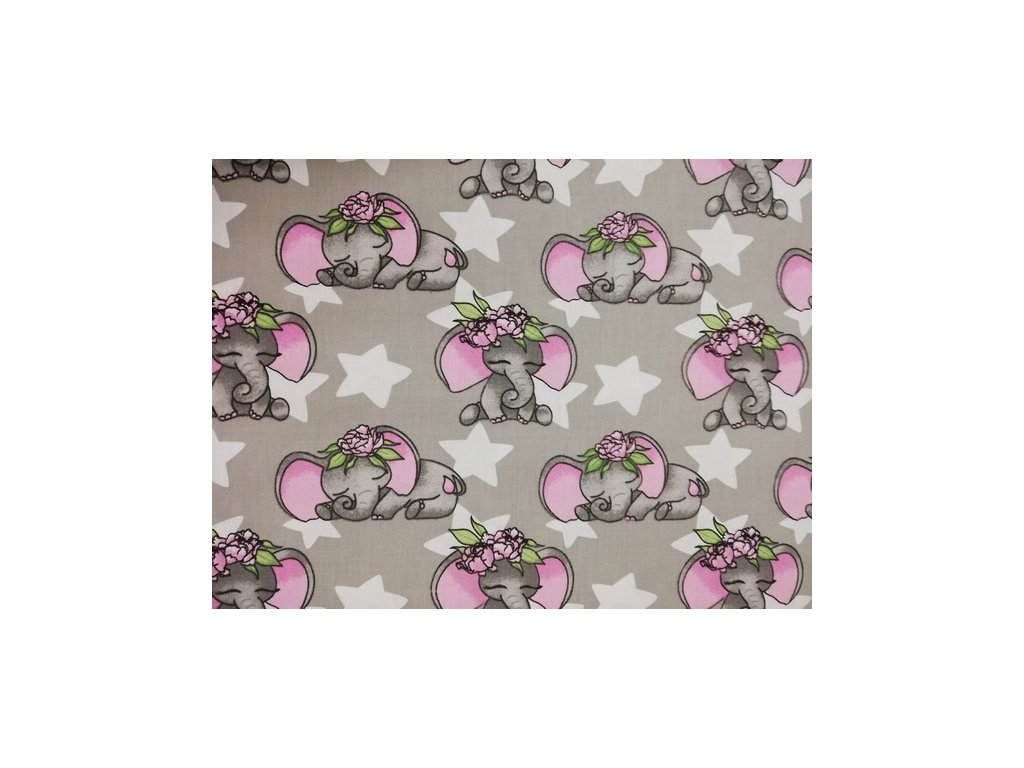 Bavlněná česká látka šíře 160cm - Slůňata a hvězdy na šedé (50cm)