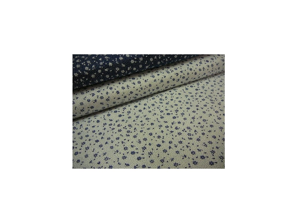 Bavlněná česká látka šíře 160cm - tm. modrá kytička na bílé (50cm)