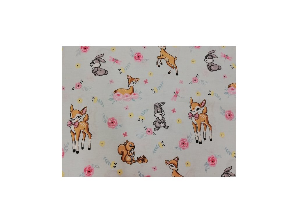 Bavlněná česká látka šíře 240 cm - Lesní zvířátka na světle modré (50cm)