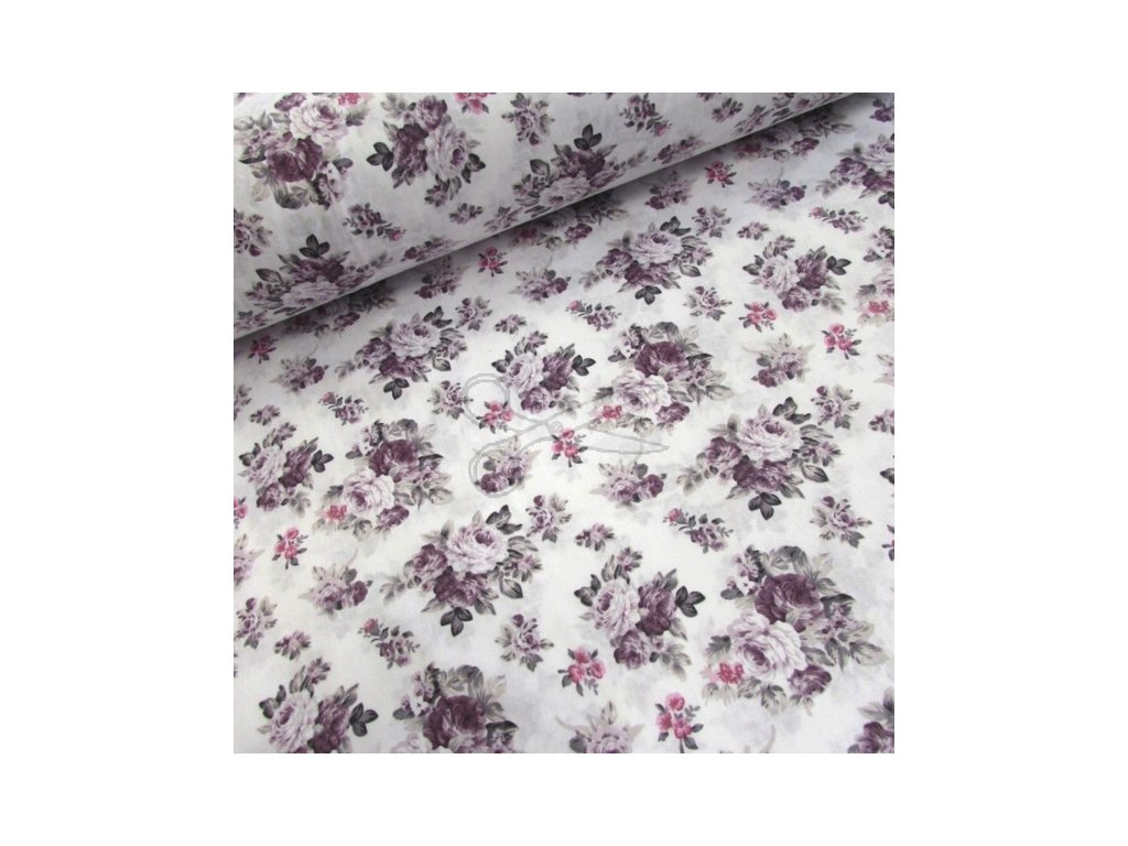 Bavlněná česká látka šíře 240 cm - Růžičky fialové (50cm)