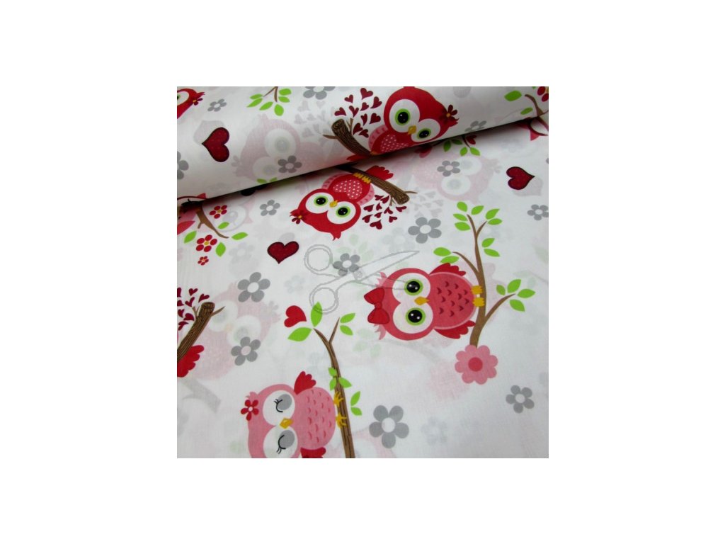 Bavlněná česká látka šíře 240 cm - Sovička červená (50cm)