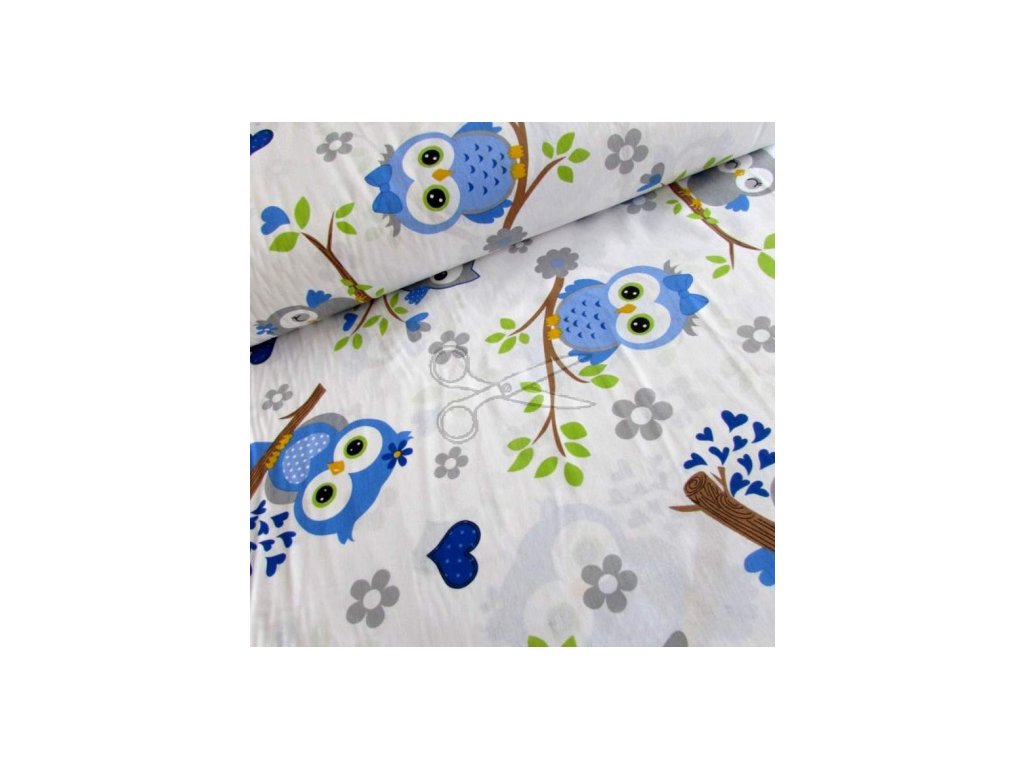 Bavlněná česká látka šíře 240 cm - Sovička modrá (50cm)