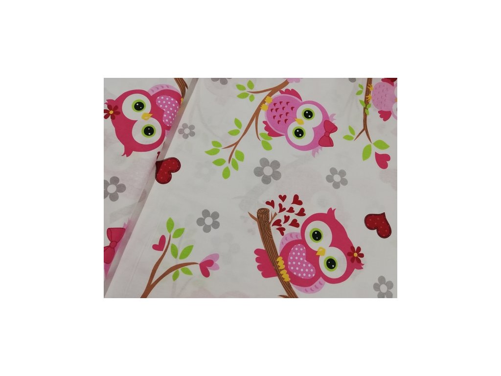 Bavlněná česká látka šíře 240 cm - Sovička růžová (50cm)