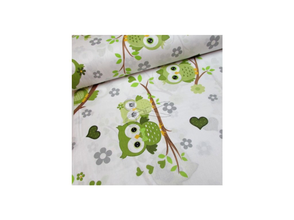 Bavlněná česká látka šíře 240 cm - Sovička zelená (50cm)