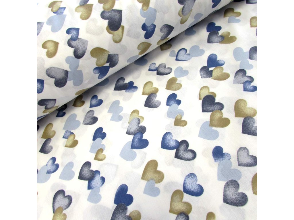 Bavlněná česká látka šíře 240 cm - Srdíčka modrá (50cm)