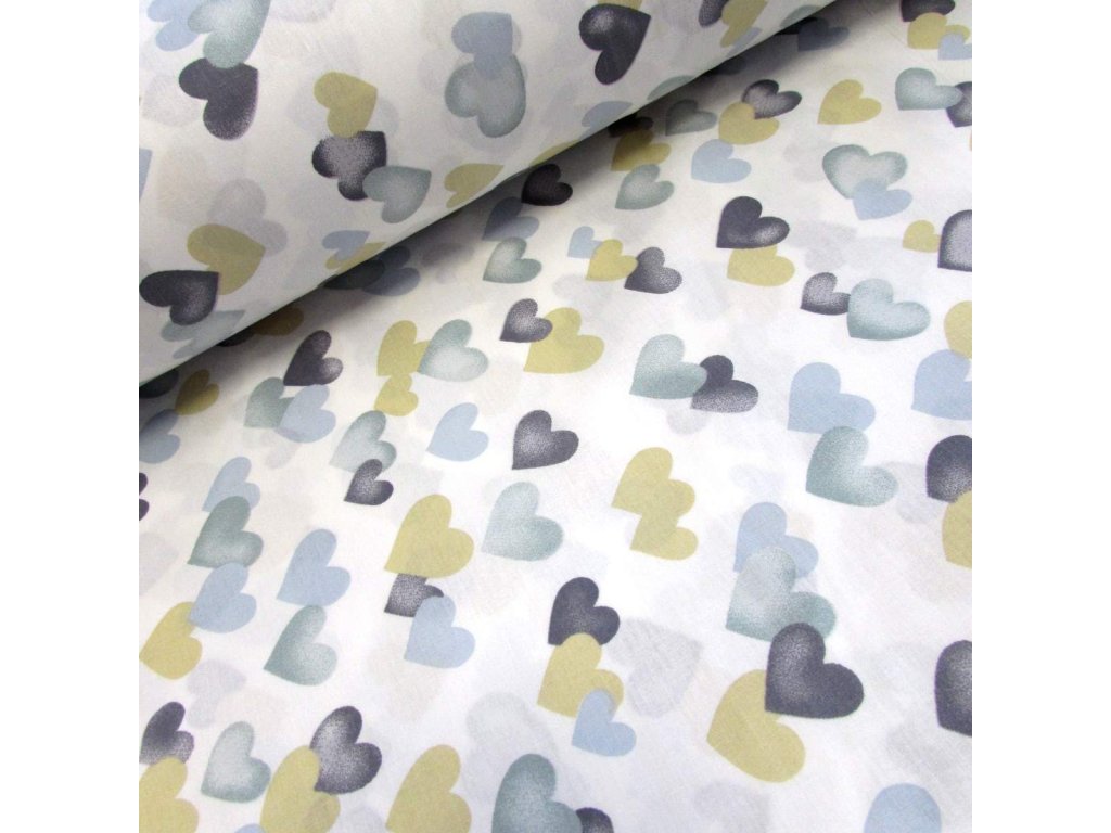 Bavlněná česká látka šíře 240 cm - Srdíčka olivová (50cm)