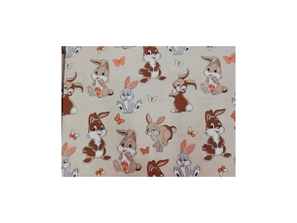 Bavlněná česká látka šíře 240 cm - Zajíčci na světle hnědé (50cm)