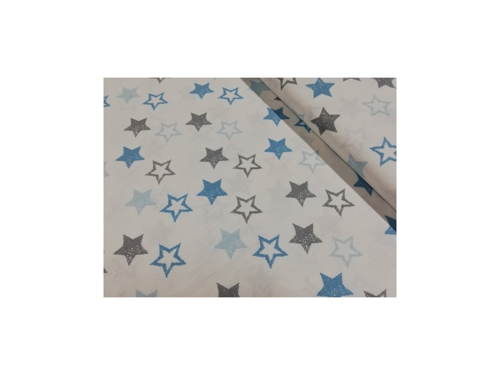 Bavlněná dovoz látka šíře 240cm - Hvězdička šedá a modrá (50cm)