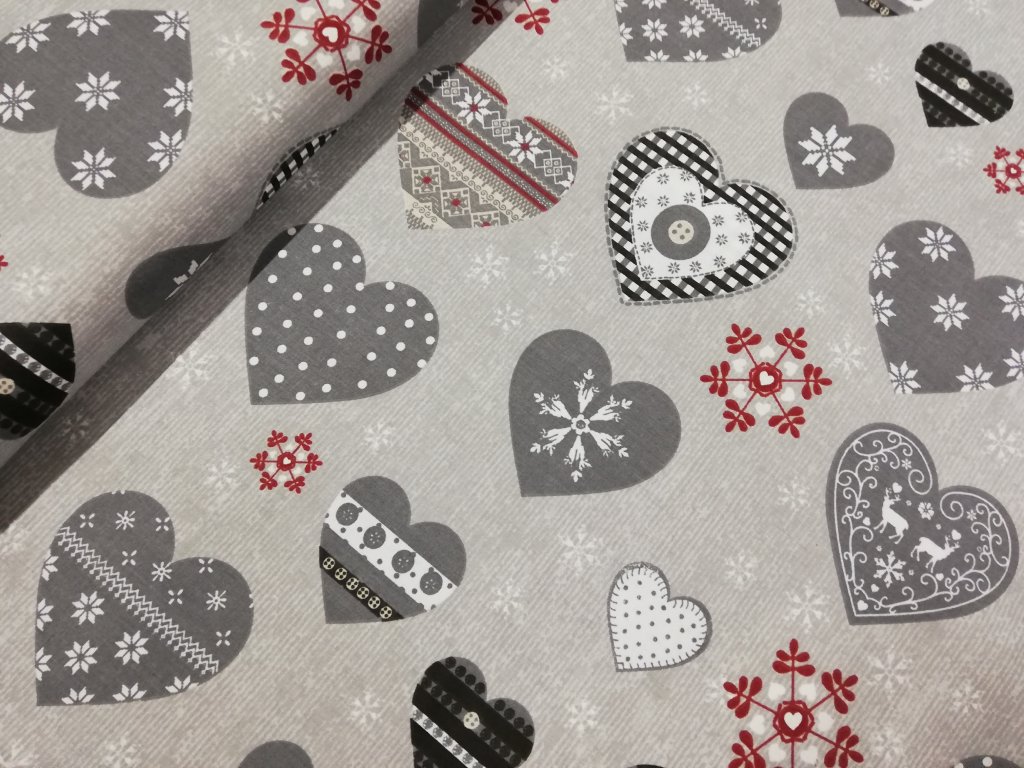 Bavlněná látka vánoční šíře 240cm - šedá srdce na šedé (50cm)