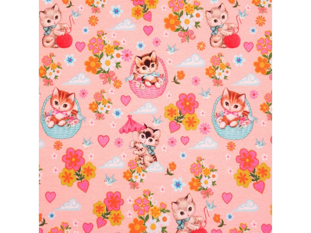 Bavlněný úplet šíře 140 cm - Kočička v košíku (50cm)