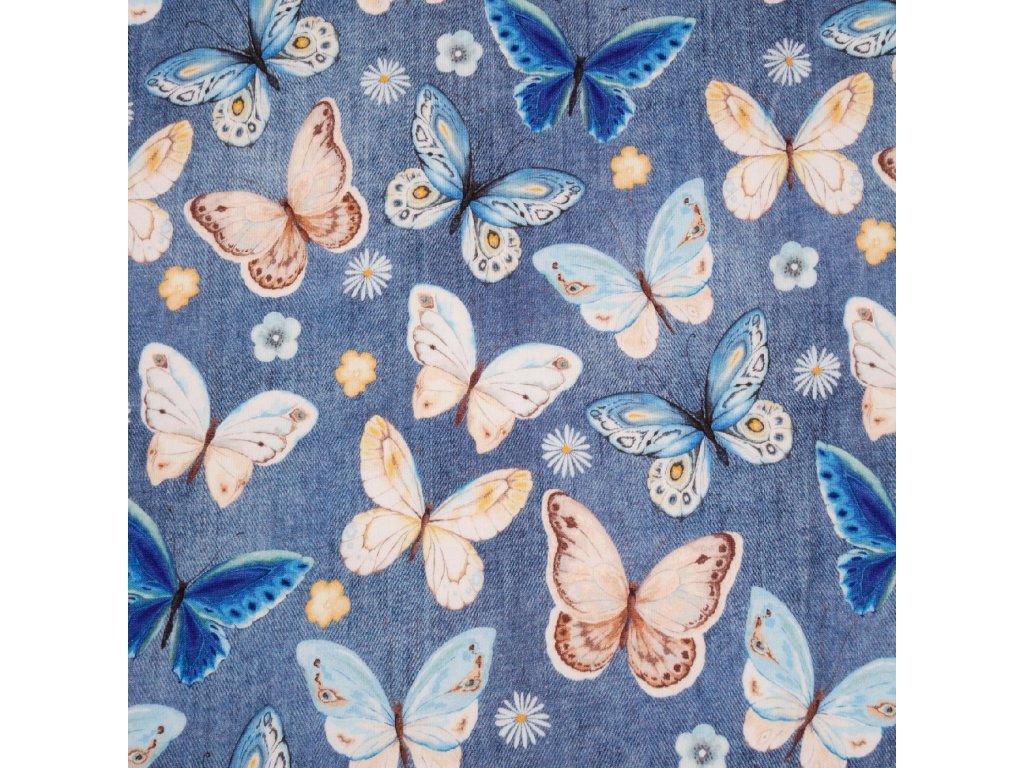 Bavlněný úplet šíře 140 cm - Motýli na modrém (50cm)