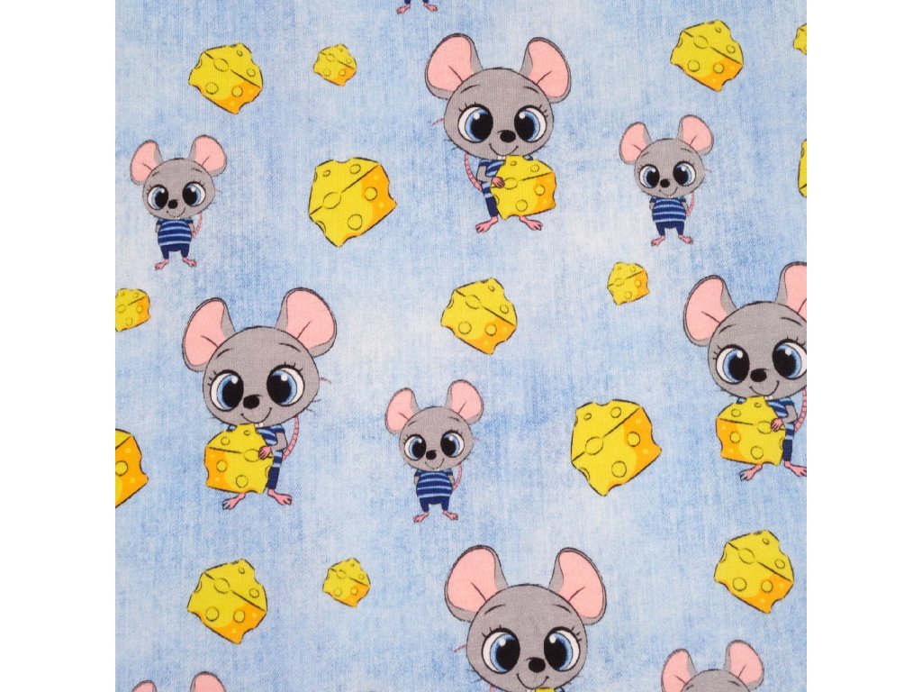 Bavlněný úplet šíře 140 cm - Myška se sýrem (50cm)