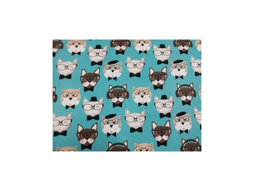 Bavlněný úplet šíře 160 cm - Kočky a psi na tyrkysové (50cm)