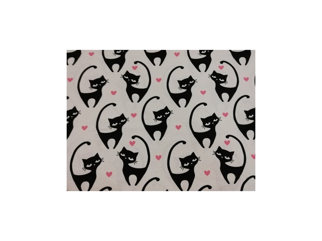Bavlněný úplet šíře 160 cm - Kočky a srdíčka (50cm)