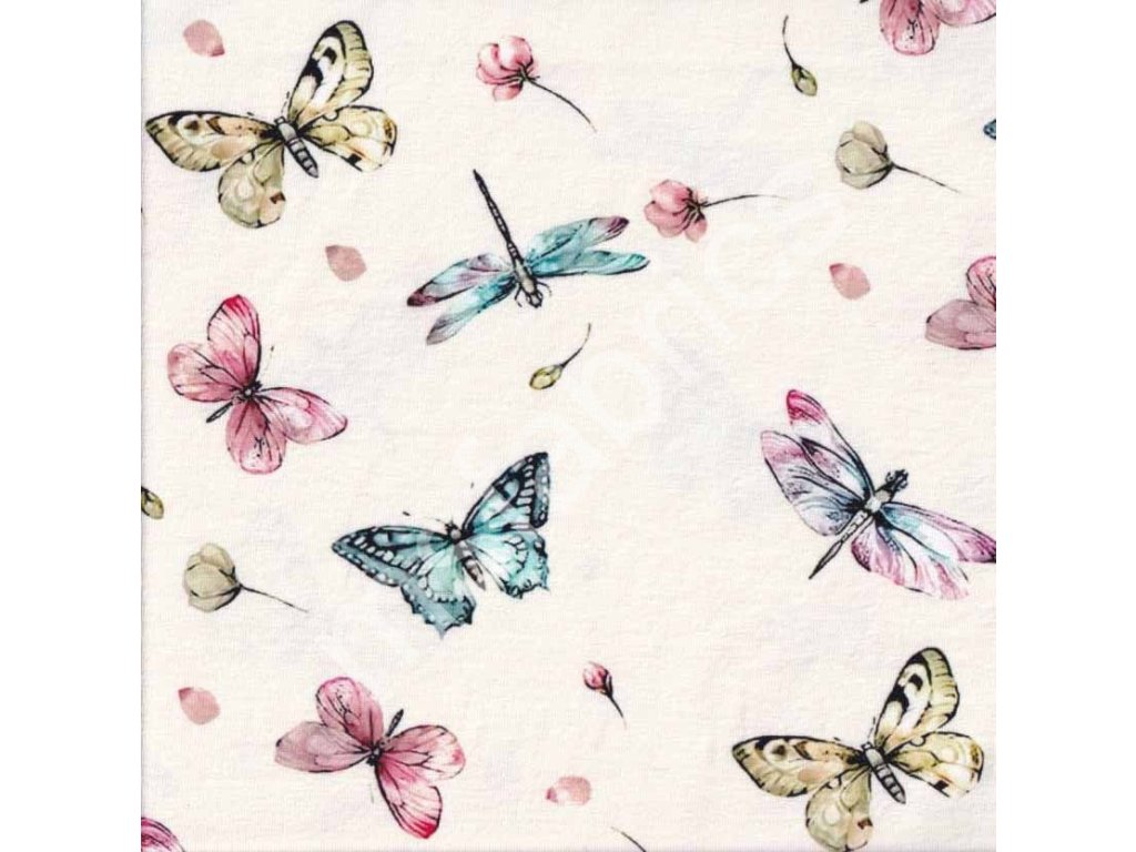 Bavlněný úplet šíře 180 cm - Motýli a vážky (50cm)