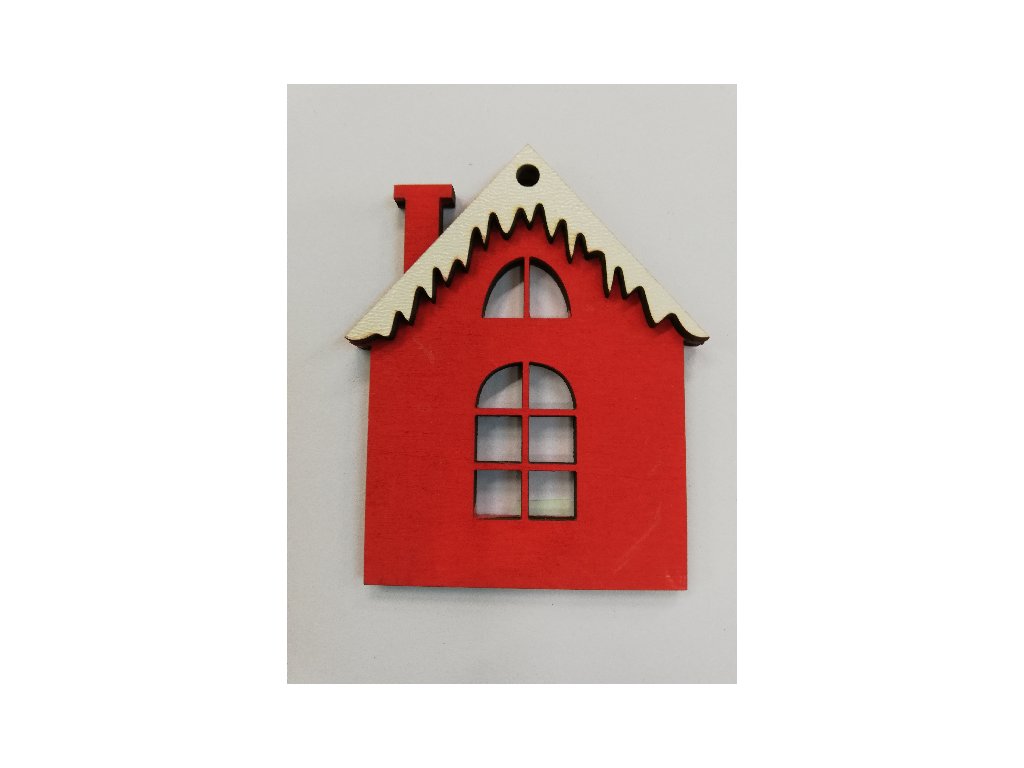 Dřevěný výřez domeček červený s bílou střechou č.3