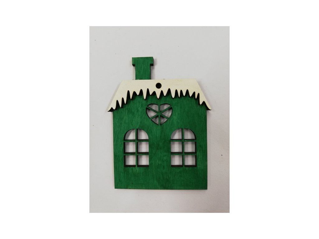 Dřevěný výřez domeček zelený s bílou střechou č.2