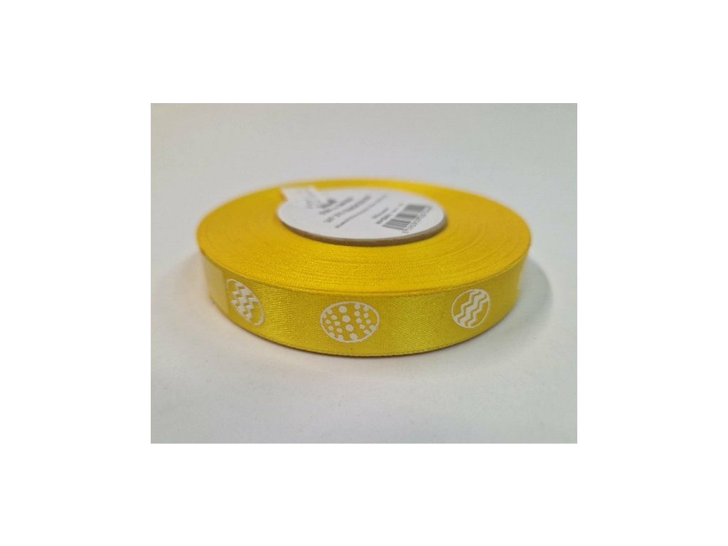 Atlasová stuha s potiskem 15mm oboulící - vajíčko žluté - od 1m