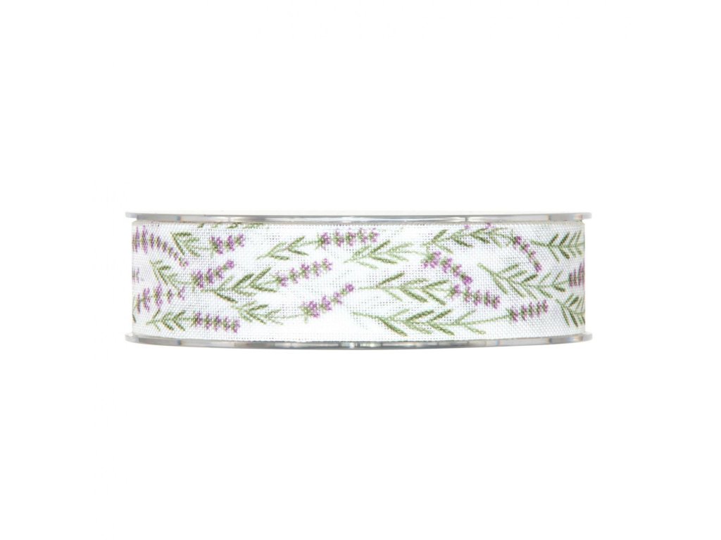Dekorativní stuha pro aranžování - motiv levandule na bílé - šíře 25mm - od 1m