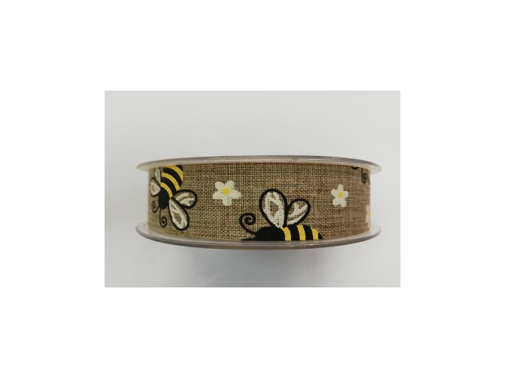 Dekorativní stuha pro aranžování - motiv včelky na režné - šíře 25mm - od 1m