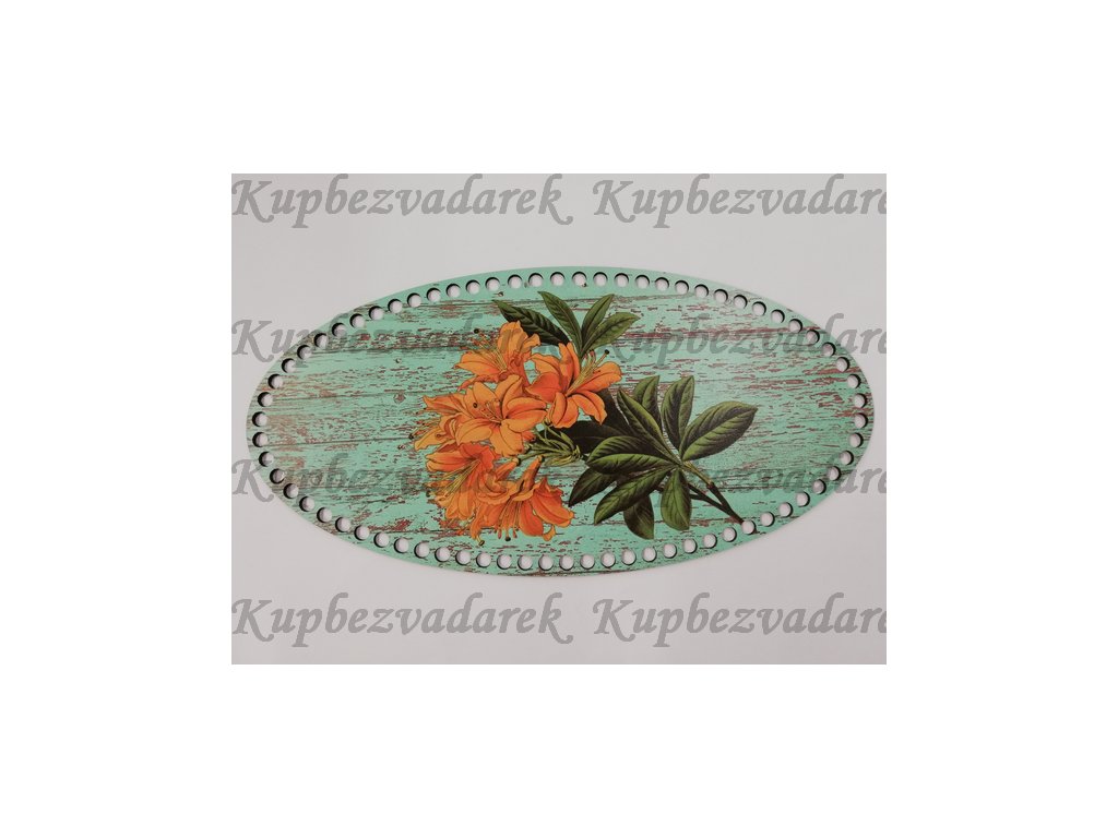 Dno na háčkování zdobené - elipsa 40 x 20 cm - lilie na tyrkysu