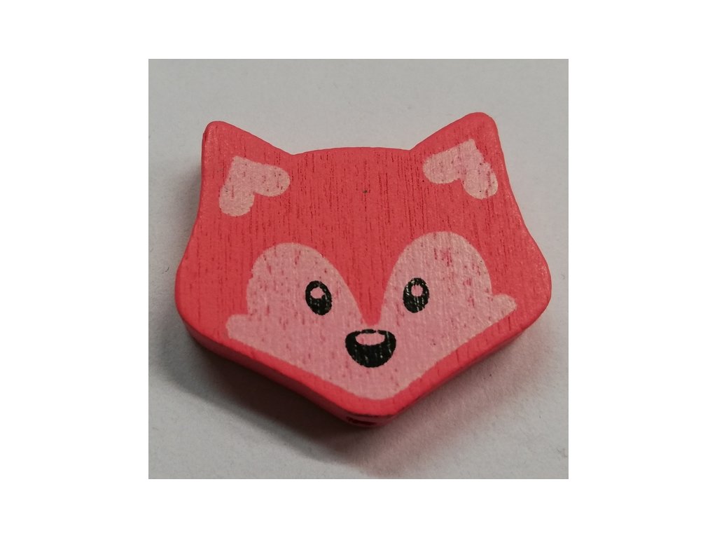 Dřevěné korálky - liška růžová - 23x27mm - 1ks