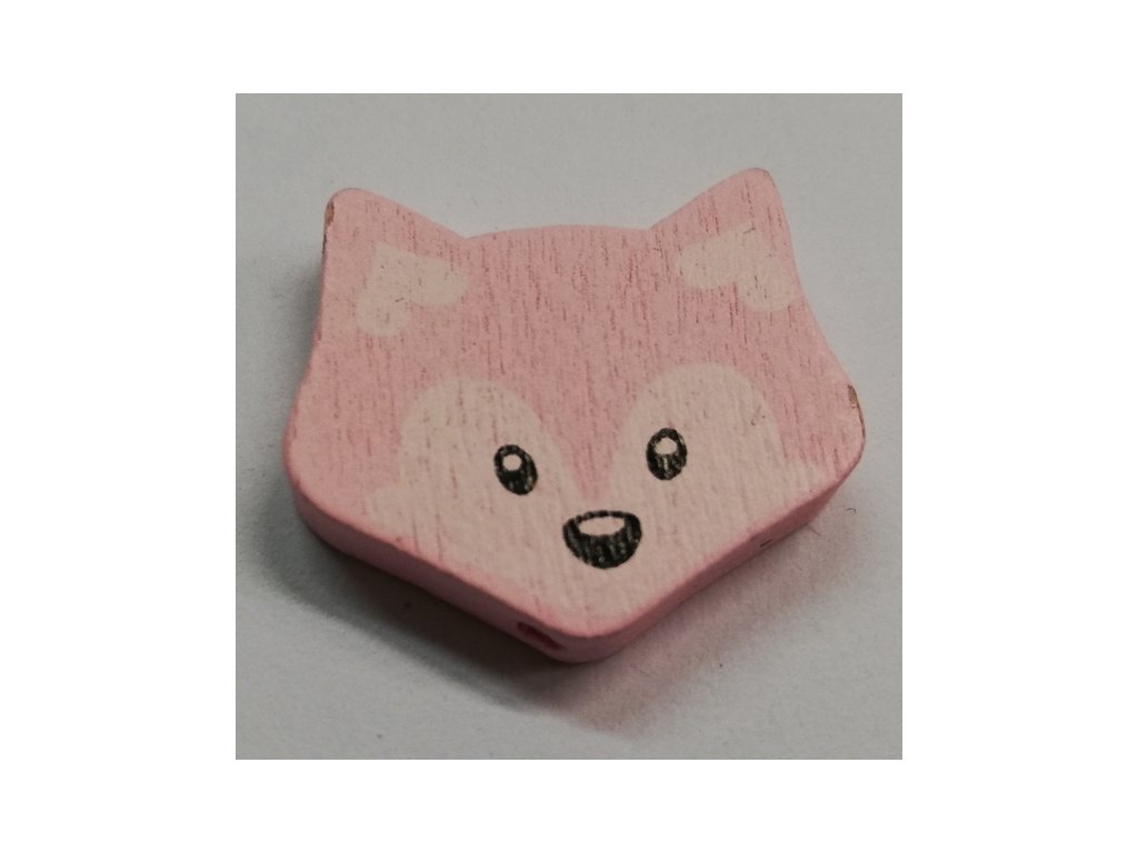 Dřevěné korálky - liška světle růžová - 23x27mm - 1ks
