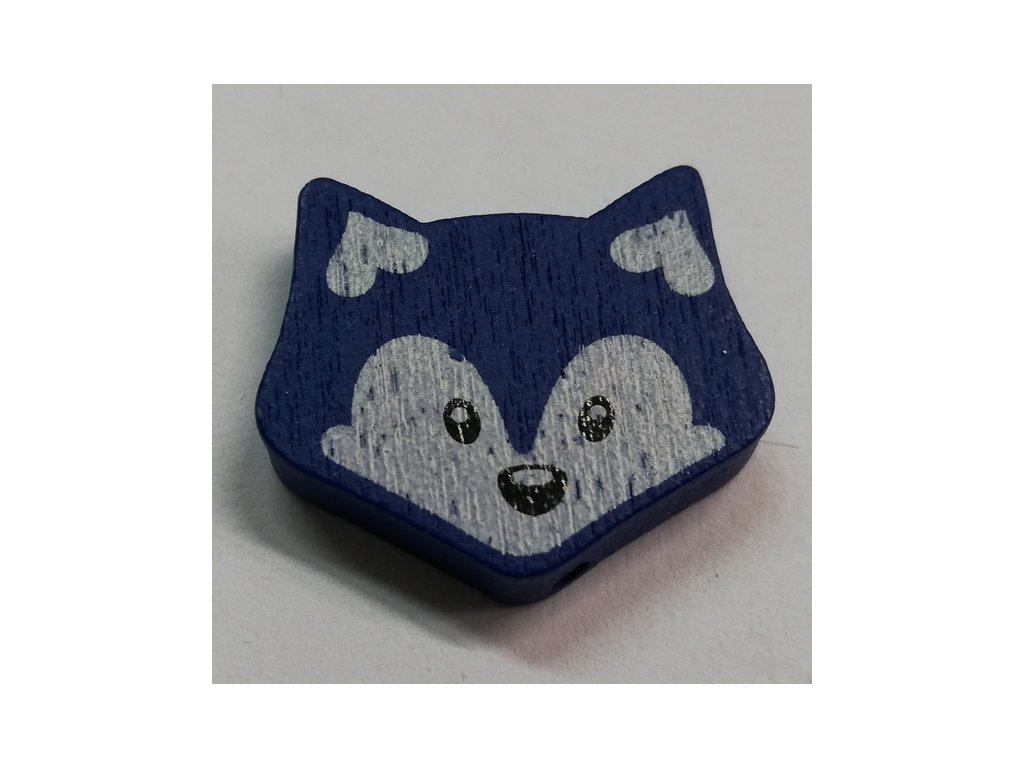 Dřevěné korálky - liška tmavě modrá - 23x27mm - 1ks