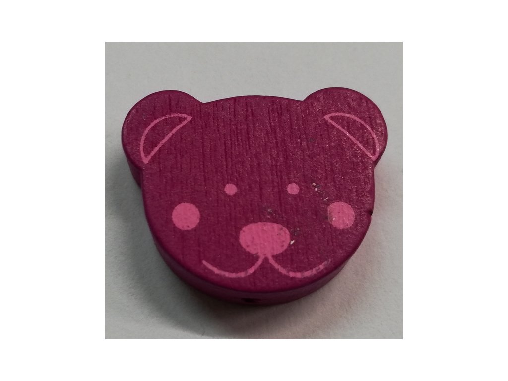 Dřevěné korálky - medvídek fuchsiový - 25x20mm - 1ks