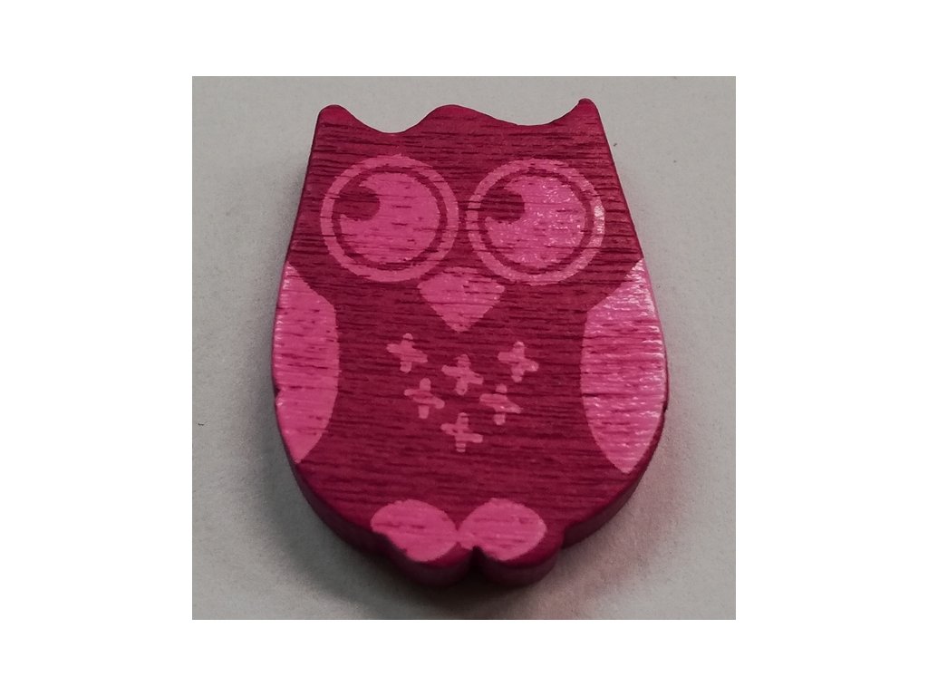 Dřevěné korálky - sovička fuchsiová - 19x25mm - 1ks