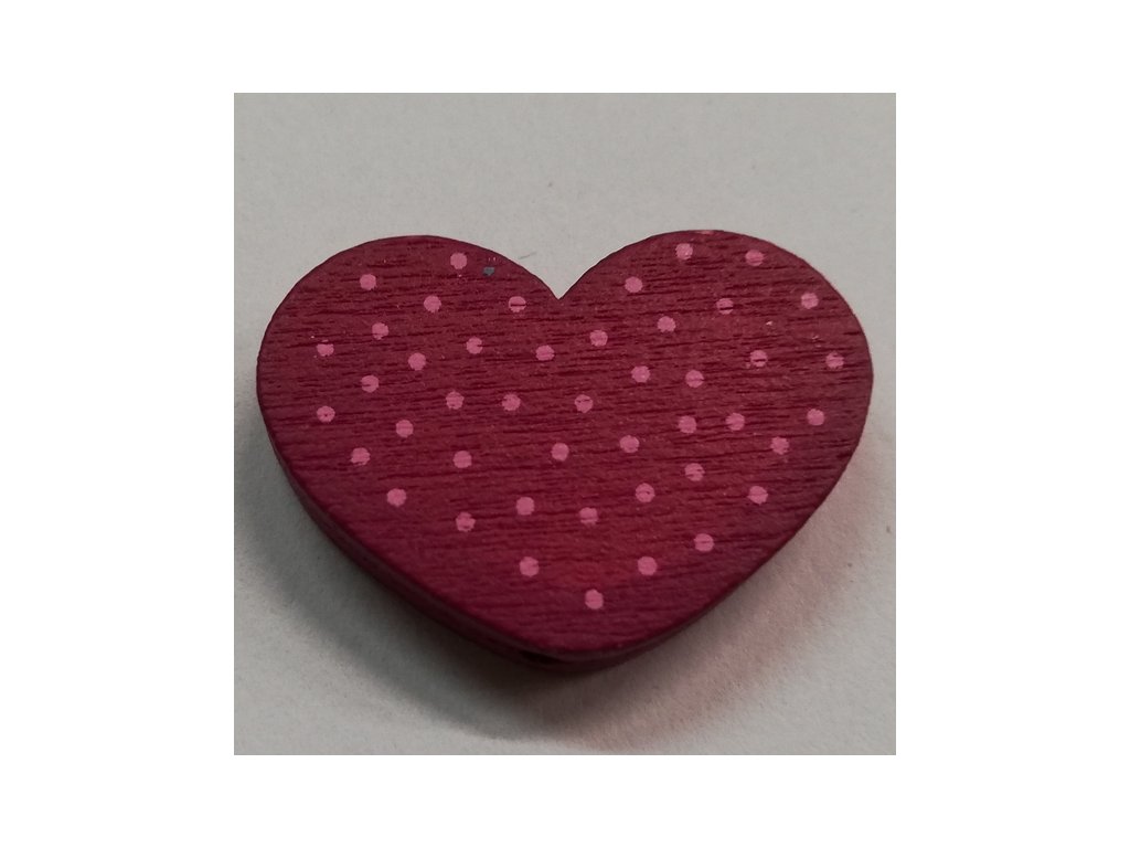 Dřevěné korálky - srdce s puntíky fuchsiové - 25x18mm - 1ks