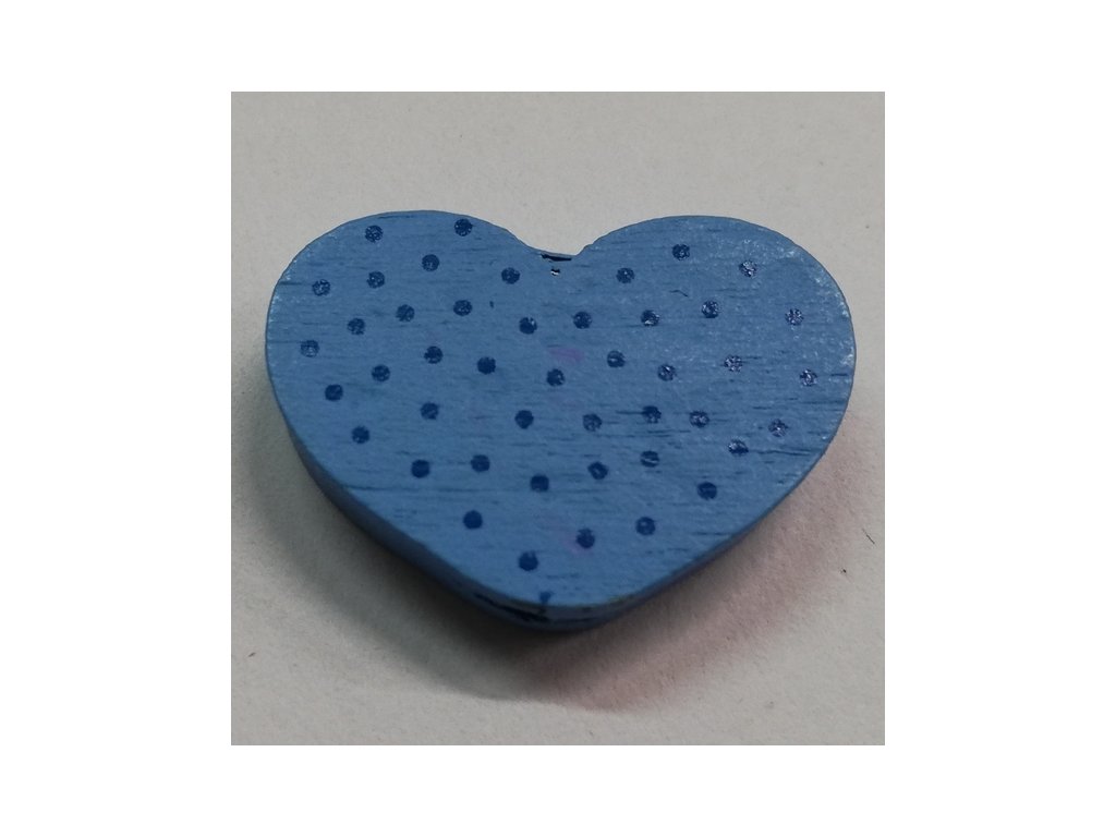 Dřevěné korálky - srdce s puntíky modré - 25x18mm - 1ks
